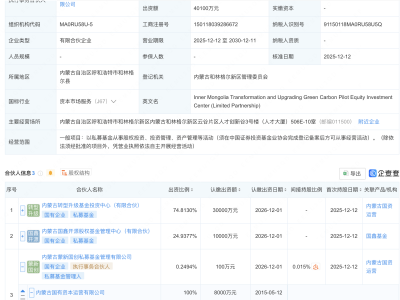 - 内蒙古国资成立转型升级绿碳领航股权投资中心