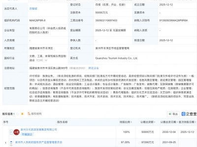 - 福建泉州文旅注资5亿成立旅游产业公司