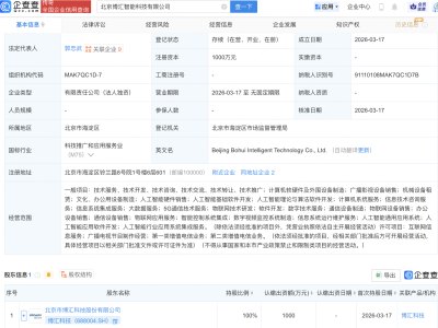 - 博汇科技新设子公司,含多项AI及物联网业务