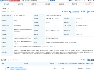 - 太阳能、中国交建成立科技公司,含储能技术服务业务