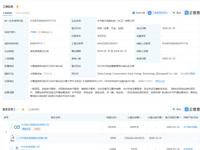 - 太阳能、中国交建成立科技公司,含储能技术服务业务