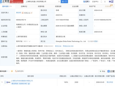 - 挚达科技在上海成立机器人公司