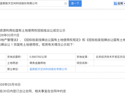 - 蓝箭航天1.7亿北京拿地