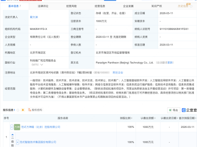 - 范式智能在北京成立万神殿科技公司