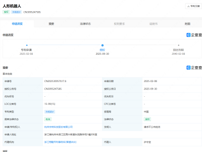 - 宇树科技申请的春晚扭秧歌人形机器人专利获授权