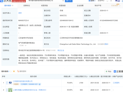 - 江苏雷利等成立电机科技新公司