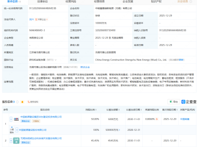 - 中国能建等在无锡成立新能源公司,含电池制造业务