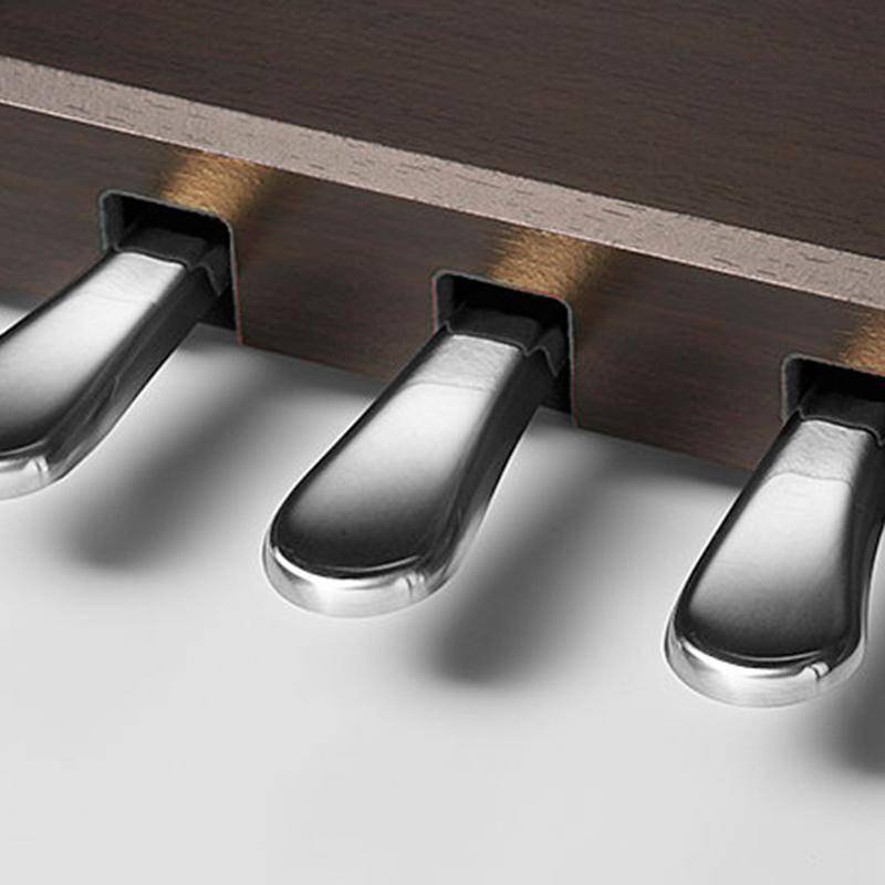 这款电钢琴之所以能赢得专业人士的青睐,关键在于其精准复刻了三角钢琴的击弦机结构。每个琴键下方都配备了独立配重锤,使得手指触碰时的阻尼感与回弹速度与真钢琴别无二致。其渐进式配重键盘设计更是匠心独运,低音区力度沉稳,高音区触感轻盈,演奏《月光奏鸣曲》时,演奏者能够精准控制弱音层次,展现出细腻的音乐表现力。三传感器检测系统每秒能扫描琴键动态上千次,即便是最细微的颤音也能被捕捉,确保了演奏的每一个细节都得以完美呈现。而象牙质感键面则采用了吸汗防滑设计,即使连续弹奏2小时,手指依然灵活自如。