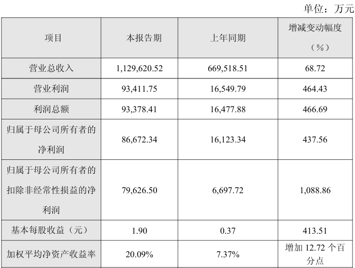 财务数据显示,公司资产规模持续扩张。截至报告期末,总资产达155.71亿元,较年初增长95.59%;归属于母公司股东的权益为54.54亿元,同比增幅126.13%;每股净资产提升至11.68元,较年初增长108.94%。这些指标表明公司资本实力和股东权益均实现显著增强。