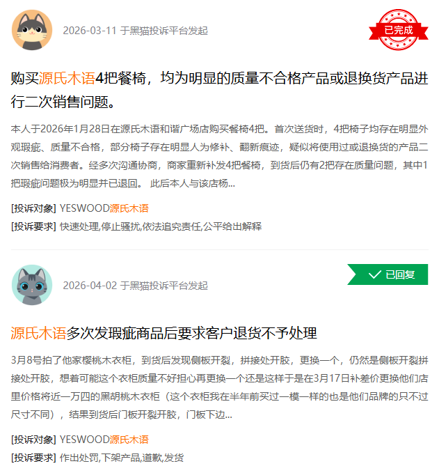 但薄利多销模式暗藏隐忧。行业数据显示,源氏木语部分门店月销售额不足50万元,回本周期长达三年。更严峻的是品控危机:2020年升降学习桌间隙超标、2021年储物柜标识不符、2024年实木床苯聚合物超标等事件频发,黑猫投诉平台累计600余条投诉中,产品质量问题占比过半。有消费者直言:"样品与实物差距大,退货需自付高额运费。"