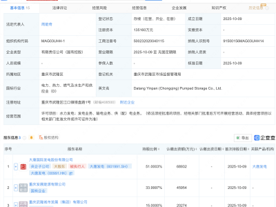 - 大唐发电等在重庆新设抽水蓄能公司,注册资本13亿