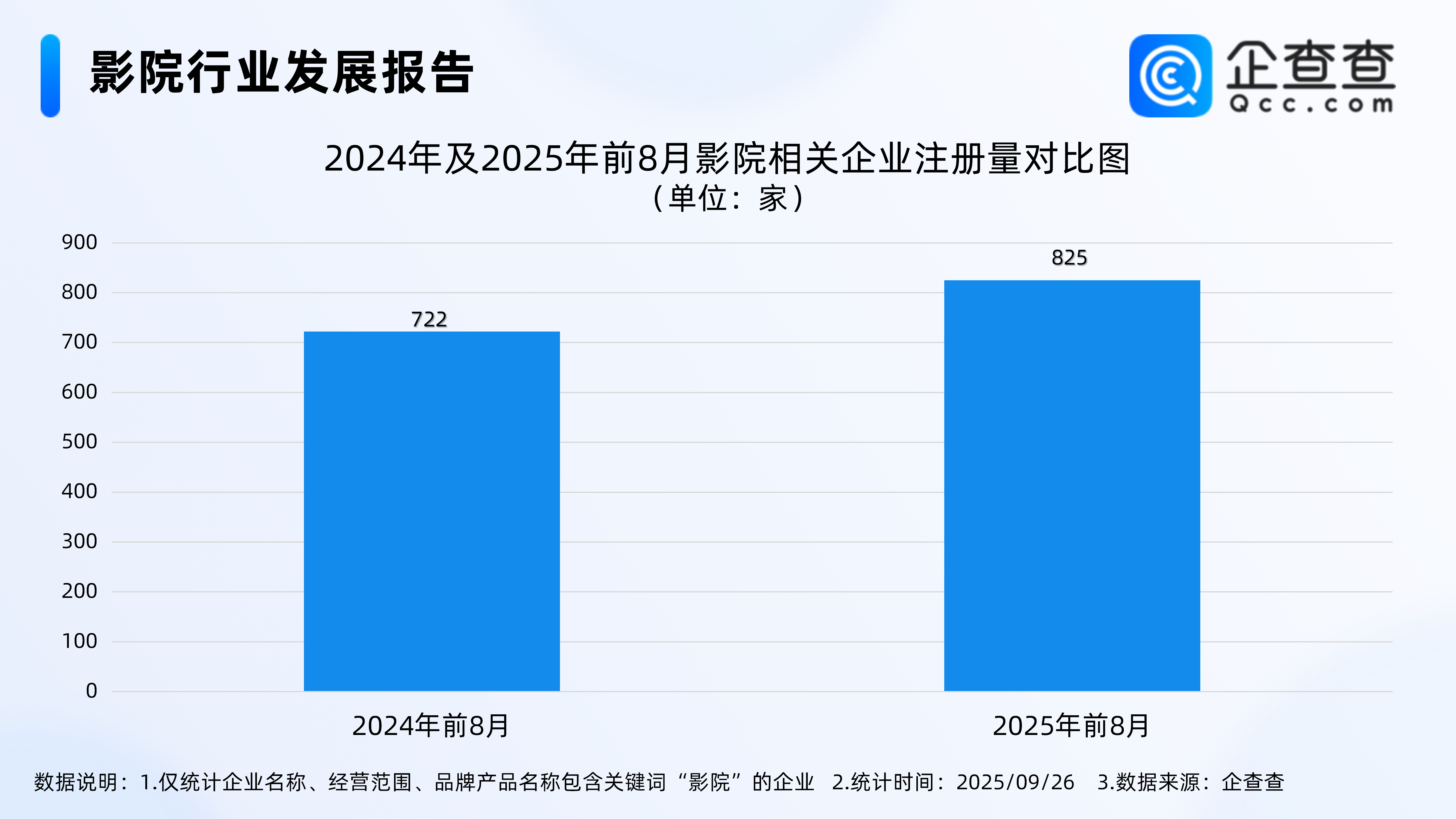 企查查数据显示,国内现存影院相关企业1.53万家。注册量方面,2024年全年注册影院相关企业1122家,同比增长38.35%。截至目前,今年已注册930家,其中前8月注册825家,同比增长14.27%。