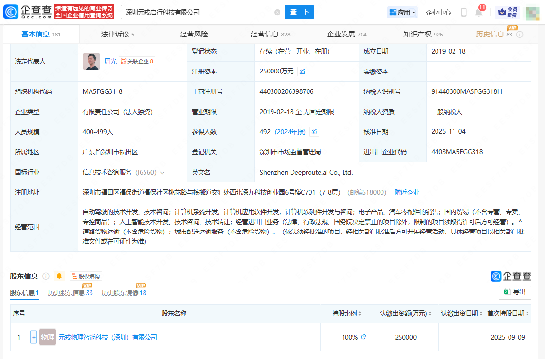 辅助驾驶系统研发商元戎启行注册资本增至25亿