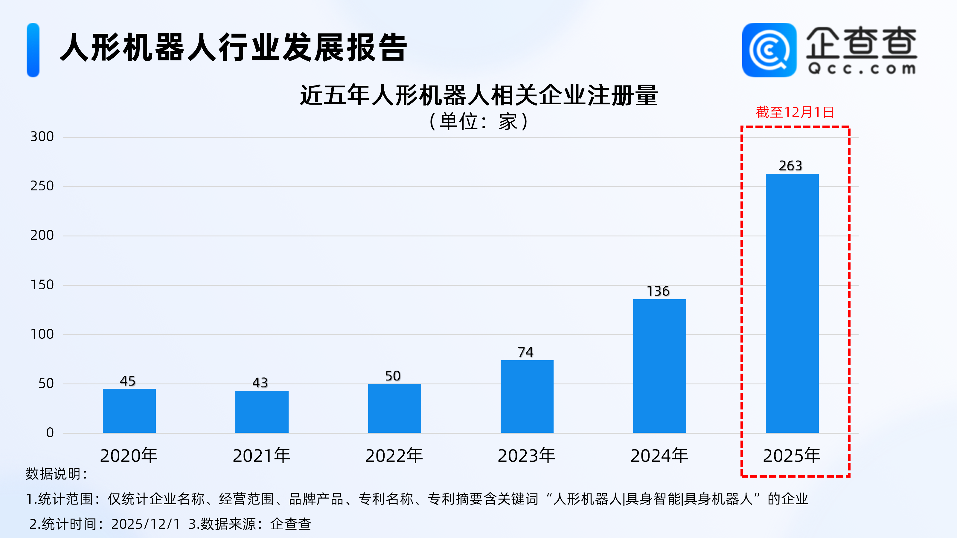 企查查数据显示,注册量方面,2022年起,国内人形机器人相关企业注册量涨势明显,其中2024年注册量同比增长83.78%至136家,今年前11月注册量达263家,已超去年全年注册水平,与去年同期相比增长119.2%。