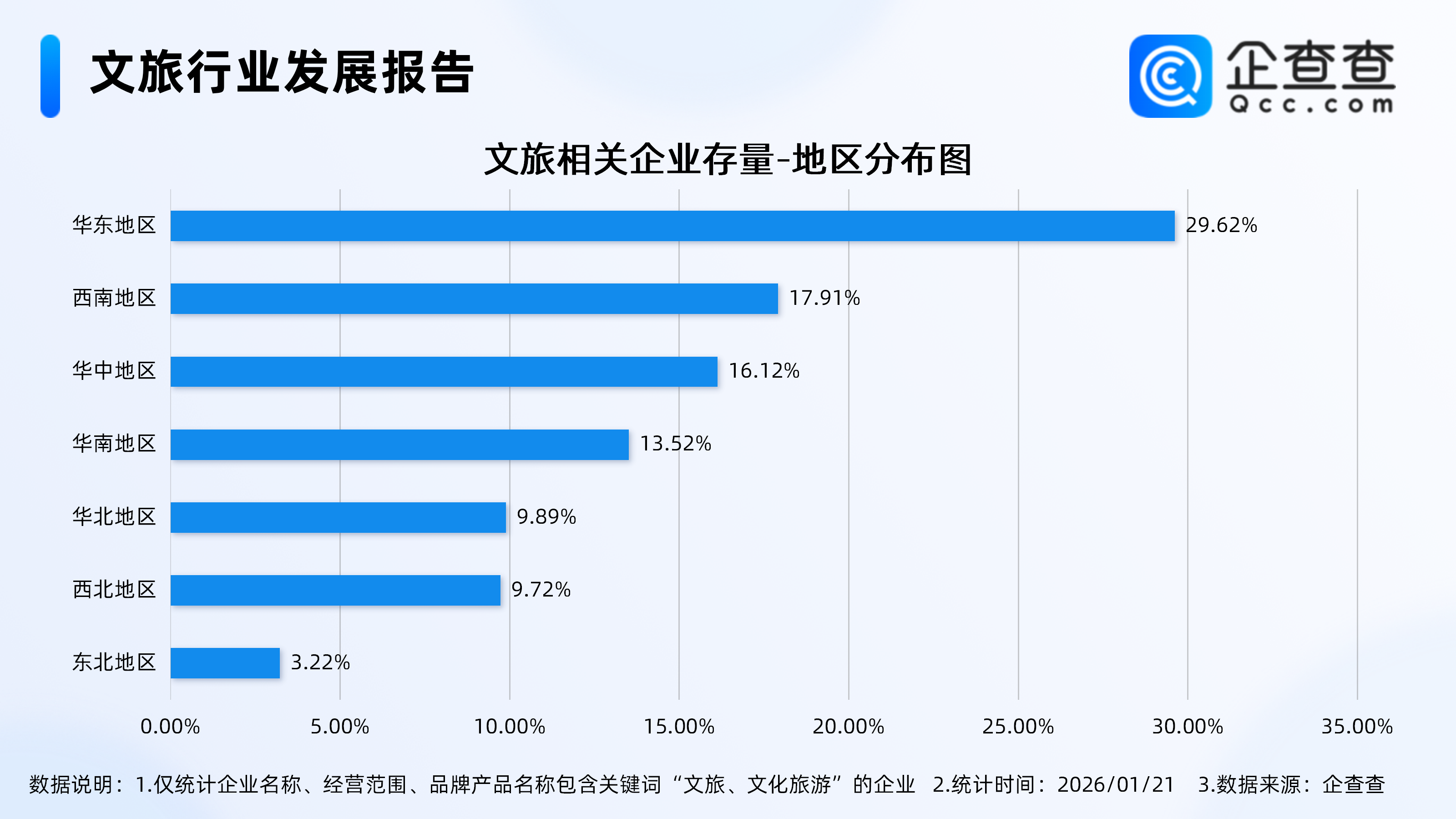 3.分布在华东地区的文旅相关企业最多