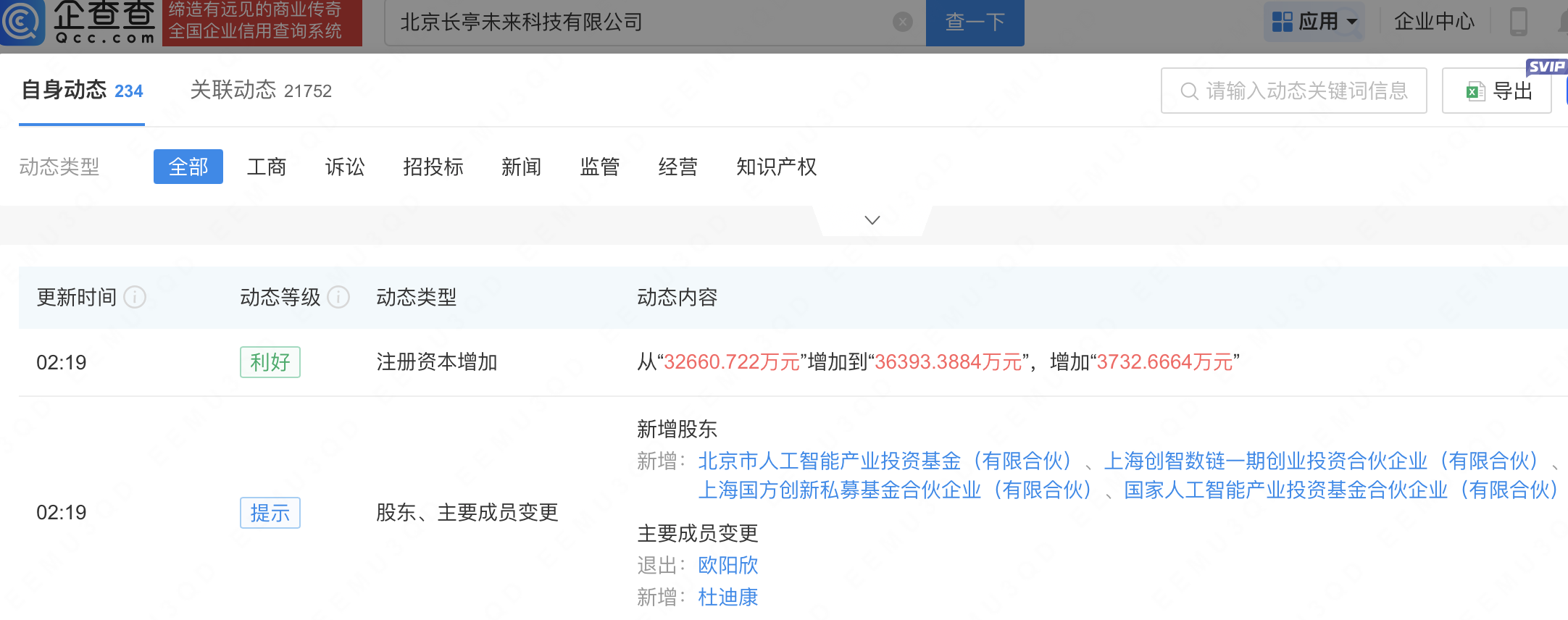 企查查APP显示,近日,北京长亭未来科技有限公司发生工商变更,新增北京市人工智能产业投资基金(有限合伙)、国家人工智能产业投资基金合伙企业(有限合伙)等为股东,同时注册资本增至3.64亿元。企查查信息显示,该公司成立于2019年,经营范围包含:数据处理服务;数据处理和存储支持服务;软件开发等。公开信息显示,长亭科技是智能网络安全领域研发商。