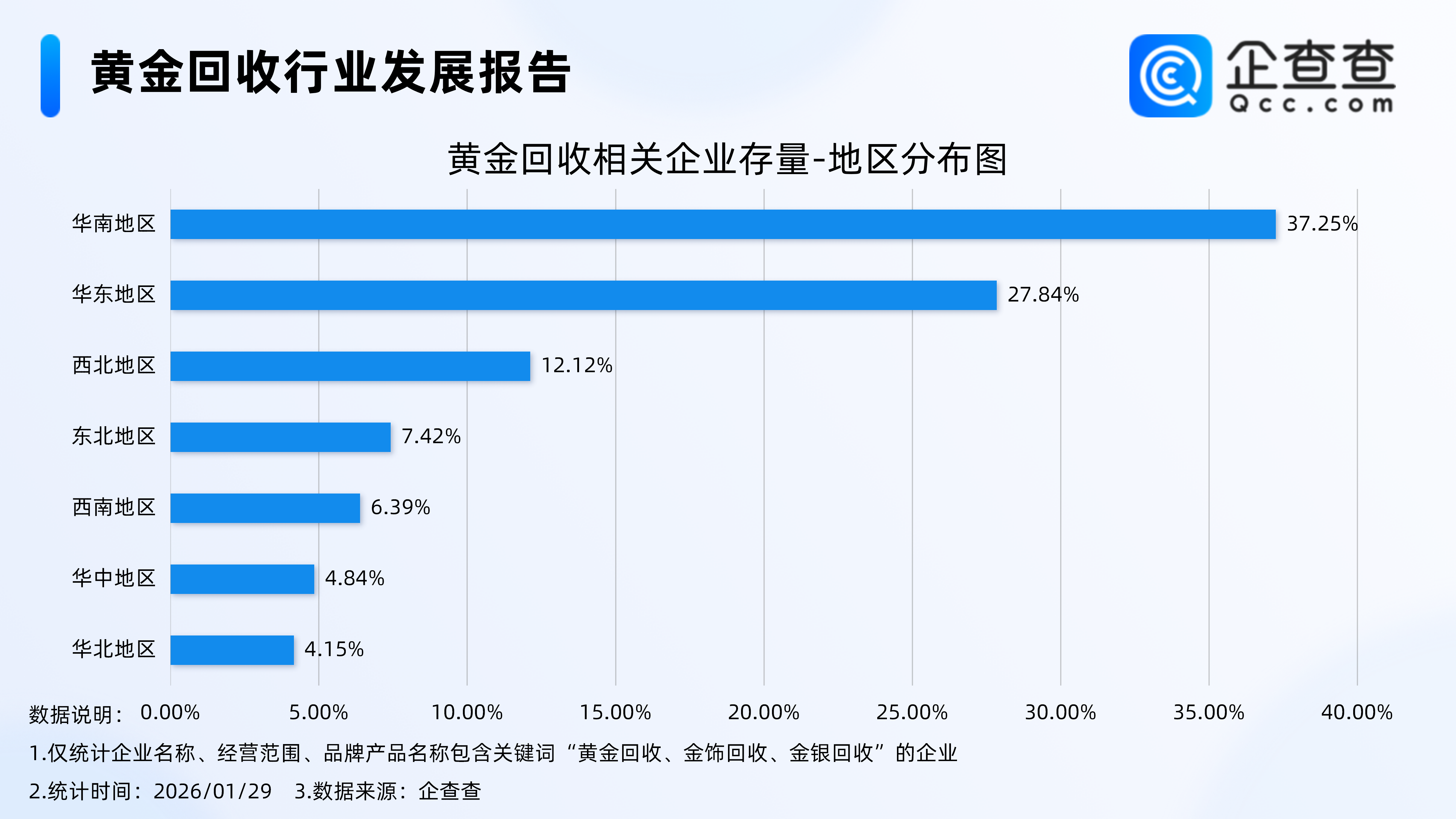 3.分布在华南地区的黄金回收相关企业最多