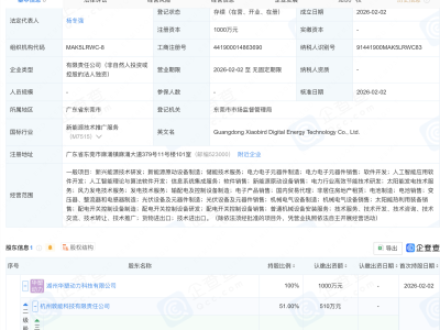 企查查APP显示,近日,华能澜沧江(昌都)水电有限公司成立,注册资本48亿元,经营范围包含:太阳能发电技术服务;风力发电技术服务;发电技术服务;储能技术服务等。企查查股权穿透显示,该公司由宁德时代(300750)、华能水电(600025)全资子公司华能澜沧江上游水电有限公司共同持股。