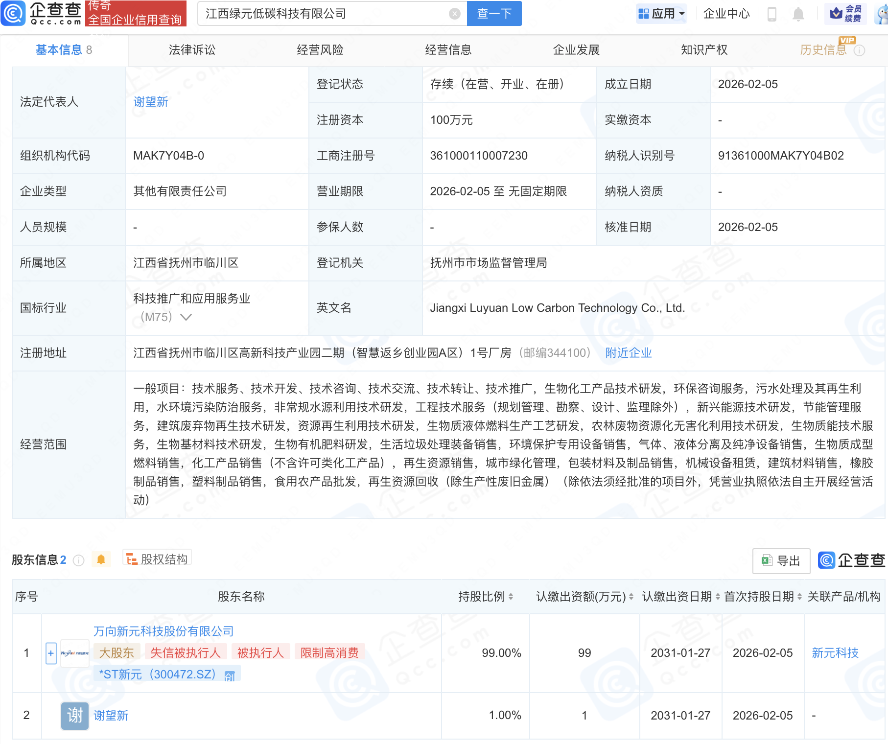 企查查APP显示,近日,江西绿元低碳科技有限公司成立,经营范围包含:生物质液体燃料生产工艺研发,农林废物资源化无害化利用技术研发,生物质能技术服务,生物基材料技术研发等。企查查股权穿透显示,该公司由*ST新元(300472)等共同持股。