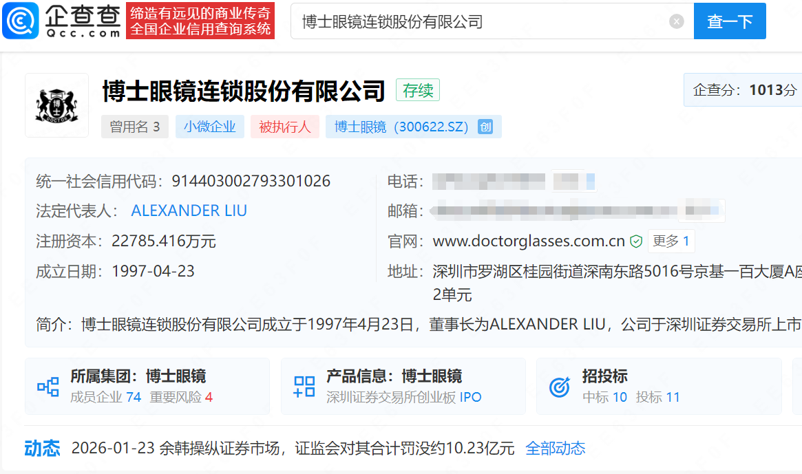 被操控企业是国内眼镜零售行业第一家上市公司“博士眼镜”,该公司成立于上世纪九十年代,2017年在深交所创业板上市,股票代码300622。
