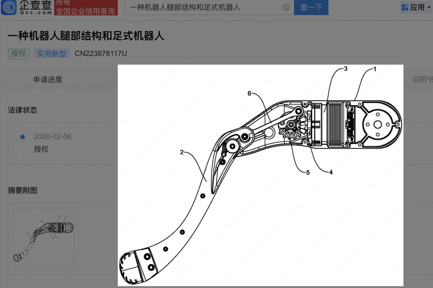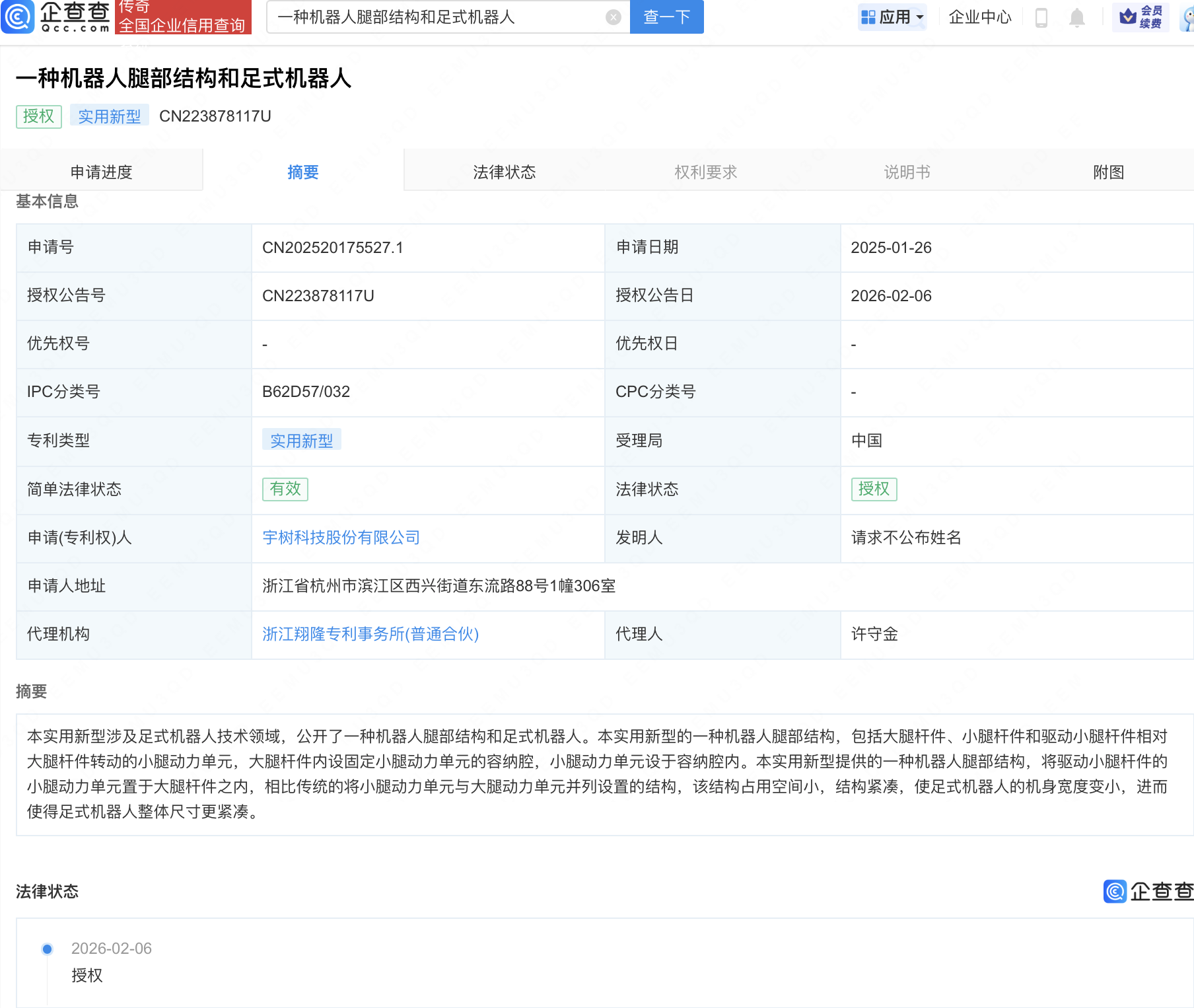 宇树科技机器人腿部结构和足式机器人专利获授权
