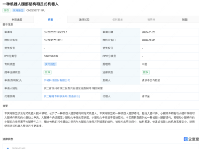 企查查APP显示,近日,魔法原子机器人科技(无锡)有限公司申请的“双足机器人”专利获授权。专利摘要显示,产品用于巡检、安防、探索、搬运、工业作业、勘察、科研、服务、教育、陪伴、娱乐、演出。