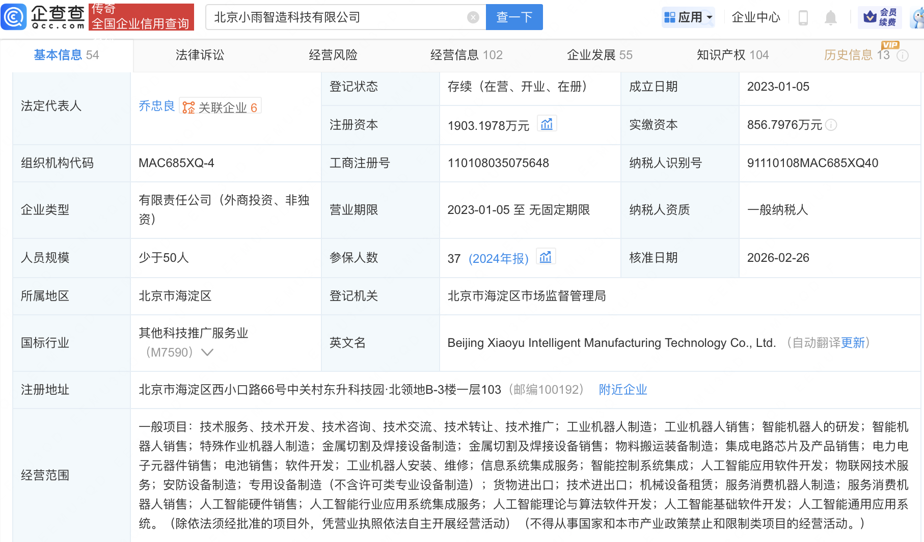 企查查APP显示,近日,北京小雨智造科技有限公司发生工商变更,新增茅台(贵州)高质量成长股权投资合伙企业(有限合伙)等为股东,同时注册资本增至1903.2万元。企查查信息显示,该公司成立于2023年,经营范围包含:智能机器人的研发;智能机器人销售;人工智能基础软件开发;人工智能通用应用系统等。据其官网,小雨智造是一家一脑多形的具身机器人平台公司。