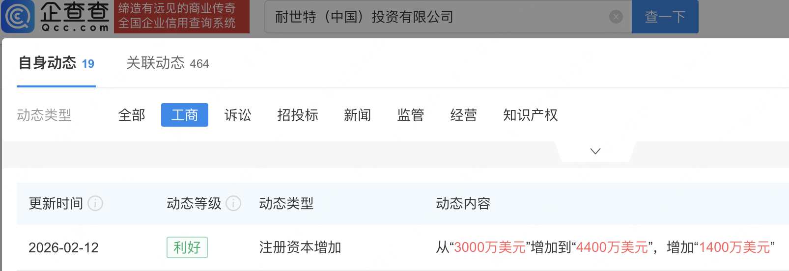 企查查APP显示,近日,耐世特(中国)投资有限公司发生工商变更,注册资本由3000万美元增至4400万美元。企查查信息显示,该公司成立于2014年,法定代表人为李军,由Nexteer Automotive Group Limited(耐世特汽车系统集团有限公司)全资持股。