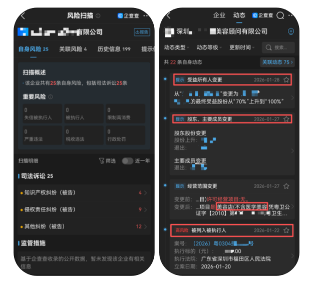 - 风险动态预警:查看企业司法纠纷、行政处罚、经营异常等记录,有大量纠纷或处罚的商家需谨慎选择。