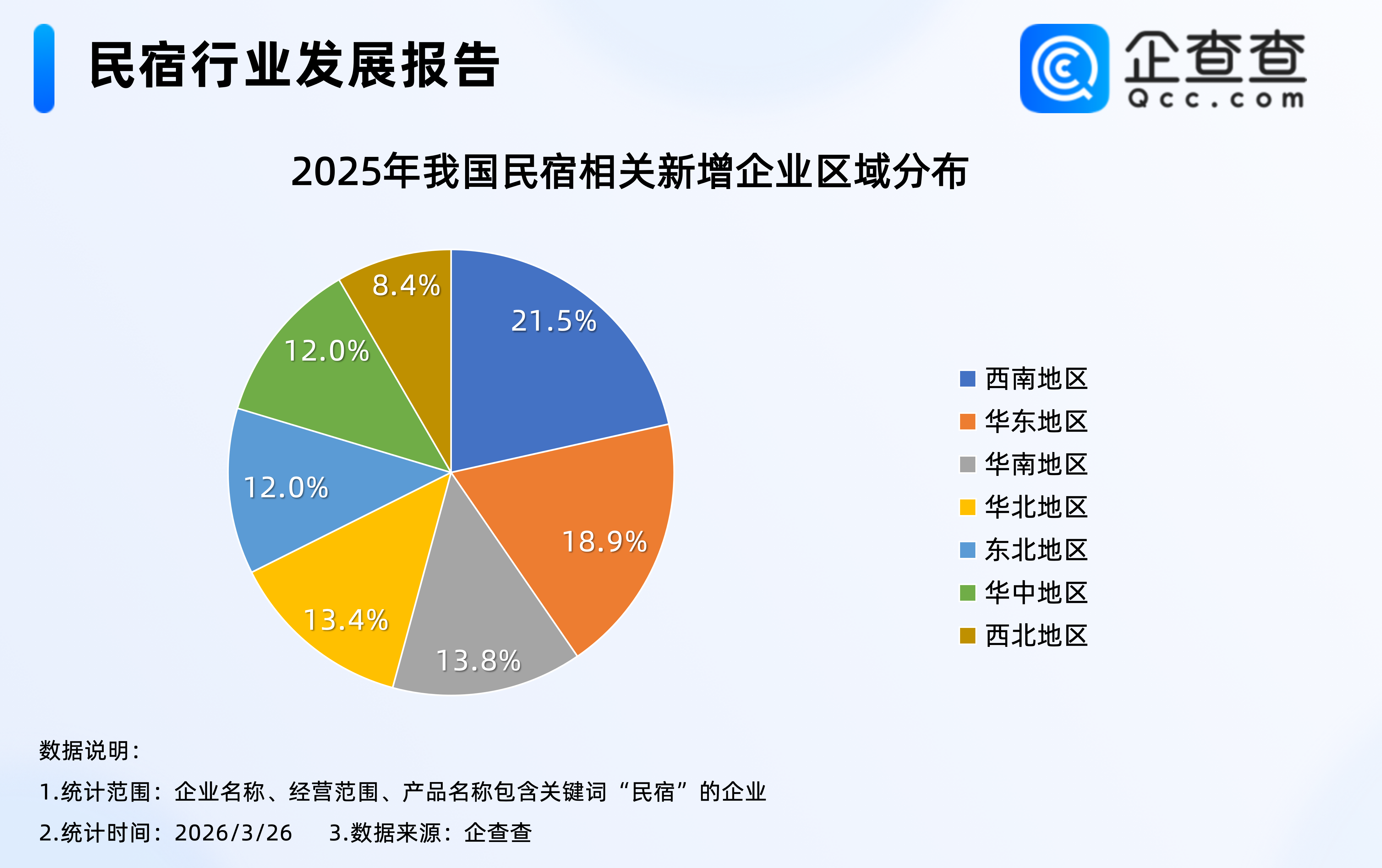 2.去年新注册企业中,西南地区最多,占比21.5%