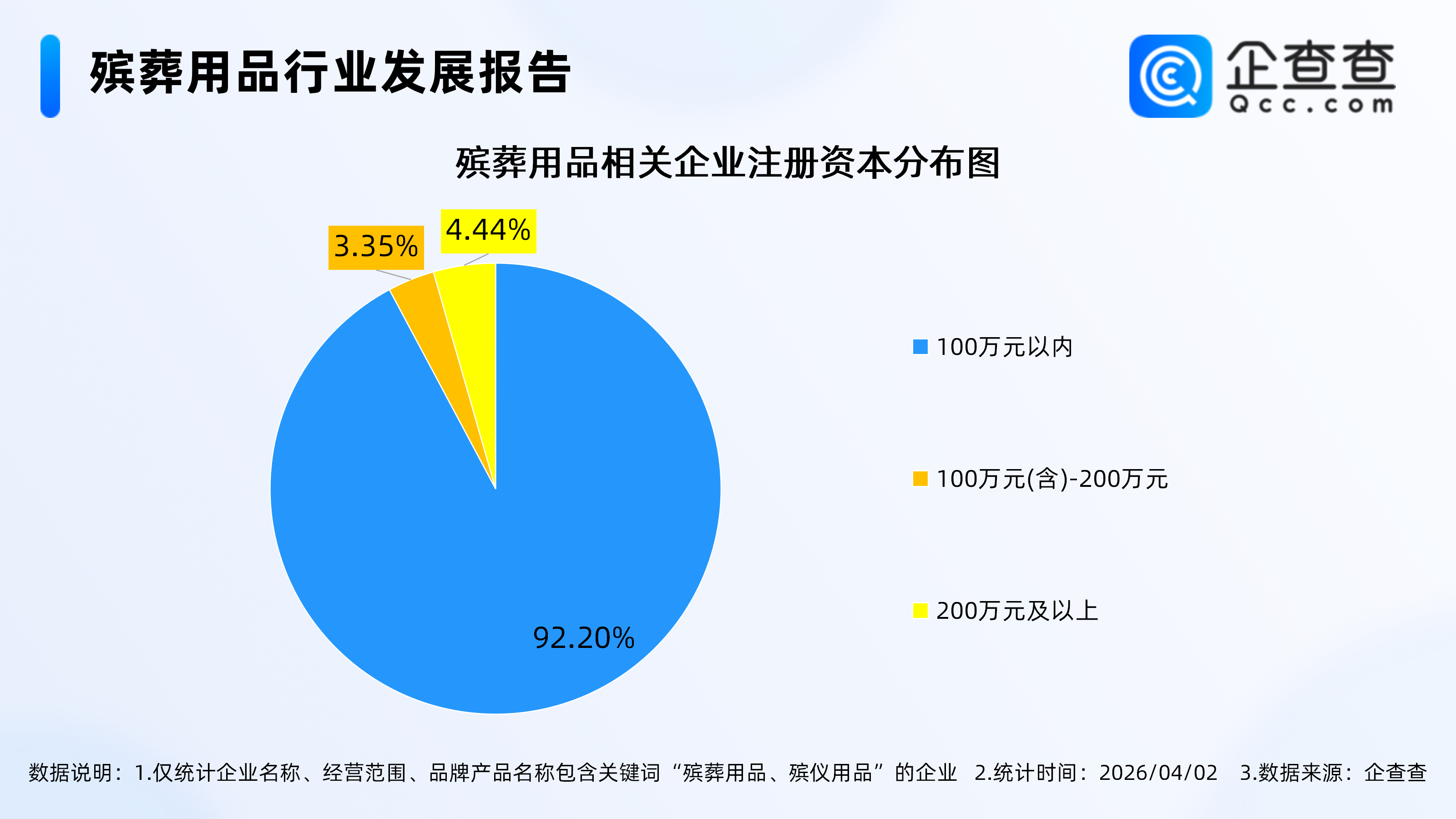 企查查数据显示,注册资本分布上,中小微企业为绝对主体:注册资本100万元以内的企业占比高达92.20%;注册资本100万元(含)-200万元的企业占比仅3.35%,注册资本在200万元及以上的企业合计占比不足5%。轻资产模式降低了行业入局门槛,也使得市场竞争更趋分散,同时也为行业创新(如线上殡葬服务、绿色环保用品)提供了灵活生长的土壤。