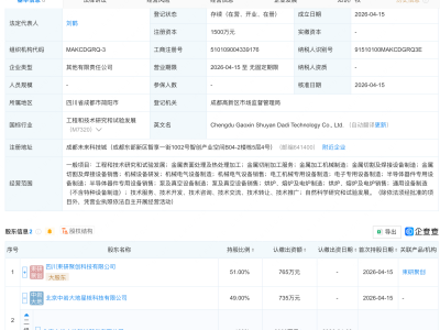 企查查APP显示,近日,乾鼎锂能(浙江)有限公司成立,法定代表人为李钱欢,注册资本为1亿元,经营范围包含:电池制造;电池销售;新材料技术研发;电子元器件制造;电子元器件零售;服务消费机器人制造等。企查查股权穿透显示,该公司由科沃斯(603486)控股的苏州泰鼎智能科技有限公司全资持股。