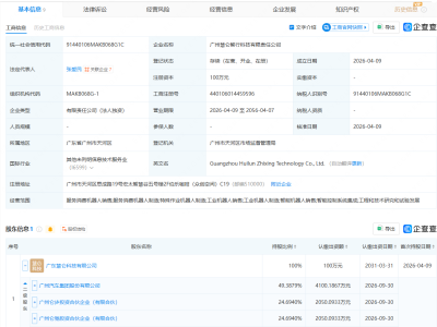 企查查APP显示,近日,四川珈冲新能源科技有限公司成立,经营范围包含:安全技术防范系统设计施工服务;智能无人飞行器销售;数字视频监控系统销售;电池销售等。企查查股权穿透显示,该公司由珈伟新能(300317)旗下深圳珈湾新能源科技有限公司全资持股。